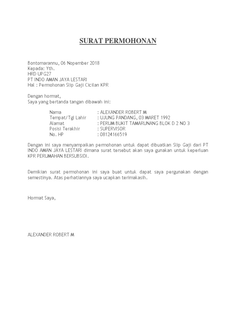 Sehubungan dengan rencana saya untuk mengajukan pinjaman uang KTA Ke pada Bank BCA kcp cikande. Cara Membuat Surat Permohonan Kenaikan Gaji. Contoh surat permohonan menjadi bakal calon perangkat desa atau sekretaris desa berdasarkan peraturan bupati kendal no 51 tahun 2017 pasal 12 ayat 2.